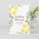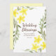 Wedding blessings invitation card featuring a scripture from the Bible book of John 15:12 and decorated with bright yellow blossoms among sprays of greenery painted with watercolor. On the reverse is a very light shade of yellow and text that you can edit to fit your needs.