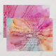 Silk Flowers, wedding invitation painted in shades of blue, orange and pink.