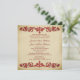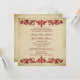 A vintage, distressed paper look background in warm cream and brown shades forms the basis of this stunning Wedding invitation template. Decorative leaf scrollwork in a damask style, shaded in deep, burgundy red tones complete this fully customisable design. Other sizes of this invitation are available in store.