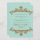 A vintage ornate frame of swirls with a compass in gold set against a mint / aqua background set the tone for a glamourous beach or seaside wedding. Personalise the text on both sides to customise for your wedding.