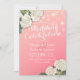 Wedding Celebration Invitation Cards Template - Elegant White lovely Watercolor Hydrangea Flowers and String Lights on Pink Gradient Background.