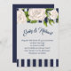 Wedding Invitation-White Roses on Blue Stripes Invitation