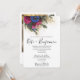 This wedding invitation includes beautiful dark pink or magenta and blue flowers in a chalk pastel style. It is a bold and modern-looking invitation to celebrate your special day.