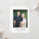 A beautifully designed wedding invitation featuring a large photo on the front with an elegant white inset border. The inside features a traditional typeface accented and framed with green leaf borders.