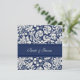 Wedding invitation cards in elegant navy blue and off white classic floral damask pattern. Customise these invitations with your wedding details. Available in matching products for all of your wedding needs.
