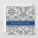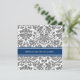 Wedding invitation cards in elegant and contemporary dark charcoal grey, dark navy blue, and white classic and chic floral damask vintage pattern. Customise these invitations with your wedding details. Available in matching products for all of your wedding needs.
