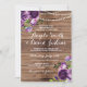Purple Flower Rustic Wedding Wood Invitation. Change the text to suit your wedding party.