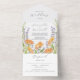 These all in one trifold wedding invitations feature botanical watercolor wildflowers in lavender, orange and sage green. An boho chic choice for spring and summer garden weddings. To see more floral designs and folded invites visit www.zazzle.com/dotellabelle