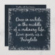 Vintage Fairytale Love Quote Wedding Invitations. Vintage black chalkboard background with white and grey bokeh lights edges, featuring the inspirational love quote, 'Once in awhile, in the middle of an ordinary life, love gives us a fairytale"
