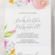 These wedding invitations with rsvp card feature feature botanical watercolor flowers in shades of pink, orange and peach with a touch of lavender. An elegant choice for a seal and send or folded marriage invites. To see more affordable wedding invitation ideas visit www.zazzle.com/dotellabelle