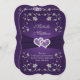 This romantic and dramatic purple and silver floral bracket shaped wedding invitation has a PRINTED RIBBON, a pair of PRINTED diamond and glitter joined jewel hearts and metallic look silver flowers on it. ****PLEASE NOTE that everything will print as it appears on your monitor, so if you have typos, alignment, or sizing issues, please contact me for help BEFORE you order. I can't do anything once the order is placed with Zazzle. If you need any other matching items, please email niteowlstudio@gmail.com.