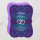 This romantic and dramatic deep purple and teal green floral bracket shaped wedding invitation has a PRINTED RIBBON, a pair of PRINTED diamond and glitter joined jewel hearts and metallic look teal blue and iridescent lilac purple flowers on it. ****PLEASE NOTE that everything will print as it appears on your monitor, so if you have typos, alignment, or sizing issues, please contact me for help BEFORE you order. I can't do anything once the order is placed with Zazzle. If you need any other matching items, please email niteowlstudio@gmail.com.