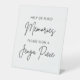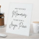 Calligraphy script Jenga guestbook sign directs guests to sign a Jenga piece to help create memories.