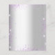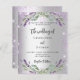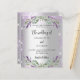 A modern, stylish wedding invitation. A faux silver looking background with violet faux glitter, sparkles, lavender florals, flowers and eucalyptus greenery. Personalise and add your names and the details.