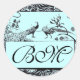 WEDDING LOVE BIRDS MONOGRAM ,black and white blue Classic Round Sticker