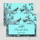 WEDDING LOVE BIRDS MONOGRAM black and white blue Postcard