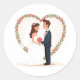 Includes 20 small stickers on one sheet. Perfectly captures the joy and love of a wedding day with a smiling bride and groom surrounded by floral hearts. Ideal for romantic decor or personalising wedding-related items.