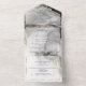 All in One Wedding Invitation - Elegant gold and shades of grey and black alcohol ink stains accented with gold veins like you would see in a beautiful marble geode - all in one wedding invitations with pre-addressed detachable meal choice rsvp - The guest now is able to fill out the rsvp, detach it from the invitation and mail back to you using the pre-addressed -return address postcard. Easy Peasy - You can also mail it using the envelopes included - if this choice is chosen, you can easily just remove the pre-address and still have a beautiful invitation. - Easy to customise template.