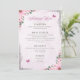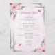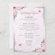 Description: A beautifully designed wedding menu featuring a pastel pink floral border with butterflies and greenery accents. The menu is divided into sections: Starters (Garden Salad with Balsamic Vinaigrette, Tomato Soup with Basil), Main Course (Grilled Chicken with Garlic Mashed Potatoes and Steamed Vegetables, Pan-Seared Salmon with Rice Pilaf and Asparagus, Vegetarian Pasta with Fresh Tomato Sauce and Parmesan), Desserts (Vanilla Wedding Cake with Buttercream Frosting, Chocolate Brownies, Fresh Fruit Salad), and Drinks (Sparkling Water, Lemonade, Tea & Coffee). The elegant typography and soft colour scheme create a romantic and inviting atmosphere.