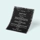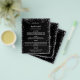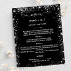 An elegant, glamourous wedding menu. A black background, decorated with faux silver glitter, sparkles. White text. Personalise and add your name, dates and the menu.