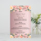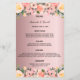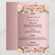An elegant wedding menu card. Dusty rose, blush pink faux metallic looking background. Pink lush watercolored roses as decor. Personalise and add your names, date and the wedding menu. Black coloured letters.