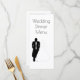 Wedding dinner menu black and white bride and groom design. You can customise this wedding menu with your own wedding details. Should you require any help with customising then contact us through the link on this page. Bride and groom black and white design personalised wedding dinner menu