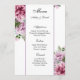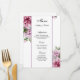 This wedding menu card is shown on basic paper in a lovely floral print. Script and standard text in a Black colour.