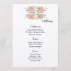 This wedding menu card is shown on the ecru embossed paper in a lovely blush pink and ivory roses print. Script and standard text in a Black colour.