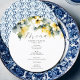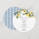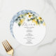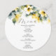 This wedding menu card features a top boarder of watercolor hibiscus flowers in shades of yellow. The card reverses to reveal a watercolor ornate pattern. Use the template fields to DIY your personalised details. The round design is a charming choice for tropical garden and elegant wedding themes. To see more custom wedding dinner menus and ideas like this visit www.zazzle.com/dotellabelle