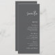 Wedding Menu Card with Guest Name Grey. Available digitally and printed. A great alternative to place cards at your wedding or rehearsal dinner, with your guest's name on their menu. This modern design is easy to personalise with your guest name and menu details. You can also change text and background colour to match your own wedding colour theme if you wish via the Customise Further option.