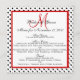 Wedding Menu Cards Dots Red Monogram Square by Elke Clarke ©2010. Customise with your wedding menu details, personal information and wedding colours.