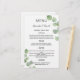 Personalise and add your names, date and the wedding menu. White background, decorated with eucalyptus greenery, sprigs.