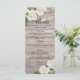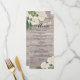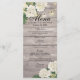 Wedding Menu Rack Cards Templates - Elegant White lovely Watercolor Hydrangea Flowers and String Lights on Rustic Wood Background.