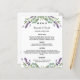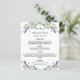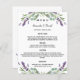 An elegant, glamourous wedding menu card. Personalise and add your names, date and the wedding menu. Decorated with lavender florals, flowers and eucalyptus greenery.