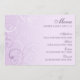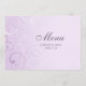 Wedding meal menu in elegant lavender swirls pattern, customisable with your details and available in matching wedding products.