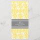 Elegant wedding dinner menu in stylish bright canary yellow, grey and white classic floral damask vintage pattern, customisable with your dinner details, available in a wide range of matching wedding products.