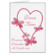 Wedding dinner menu pink coloured heart and butterflies design. You can customise this pink coloured wedding dinner menu with your wedding details. Should you require any help with customising then contact us through the link on this page. Pink coloured heart and butterflies design personalised wedding dinner menu