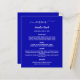 A classic wedding menu. A royal blue background. White text. Personalise and add your name, date and the menu.