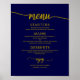 Wedding Menu SignChic Gold Navy Blue Calligraphy Poster