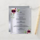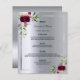 An elegant bohemian boho style wedding menu card. Feathers and lush watercolored roses in burgundy. Templates for your names, date and the wedding menu. A faux silver frame and a chic, glamourous faux silver metallic looking background. Black coloured letters.