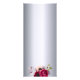 An elegant, modern and romantic wedding menu card. Faux silver metallic looking background, decorated with watercolored flowers in burgundy and rose gold. Templates for your names, date and the wedding menu. Black coloured letters. Back: Faux silver looking background and florals.