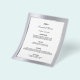An elegant, glamourous wedding or a wedding/ wedding anniversary menu. Templates for your names, date and the wedding menu. A faux silver and white frame and a chic, glamourous faux silver metallic looking background colour. Black coloured letters.