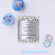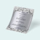 An elegant and glamourous wedding menu. Black and white watercolored roses as decor. Templates for your names, date and the wedding menu. A faux silver frame and a faux silver metallic looking background colour. Black coloured letters.