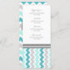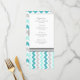 Elegant wedding dinner menu in elegant bright turquoise aqua blue, grey and white chevron zigzags retro pattern, customisable with your dinner details, available in a wide range of matching wedding products.