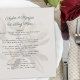 Round wedding menu template with southern magnolia design. Pinkish beige colour with dark green text to customise in two places. The title is script font with names of the couple and menu title. The entrées and all menu offerings are added in one paragraph. This design works on the round or square shape. Remove the envelope option as desired.