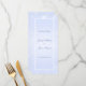 These custom Wedding Menus feature a pale blue shaded background with white border and delicate snowflakes.