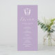 This elegant lilac wedding menu features a simple monogram crest with the bride and groom's initials. The word "Menu" is set in calligraphy script. Use the template fields to add your custom menu items. Perfect for weddings, rehearsal dinner, engagement parties and more.