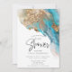 Wedding | Modern Abstract Teal Marbled Alcohol Ink Invitation