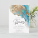 Modern abstract bridal shower invitation featuring hand written calligraphy paired with elegant alcohol ink art and watercolour painting design in shades of teal , turquoise blue and bronze with faux gold texture, accented with handwritten style calligraphy. Use our easy to customise template to personalise with your details - a Stunning Design © by WhimsicalArtwork™