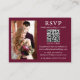Modern Minimalist Simple Wedding RSVP Card with your QR Code. Couple Photo on front. Burgundy